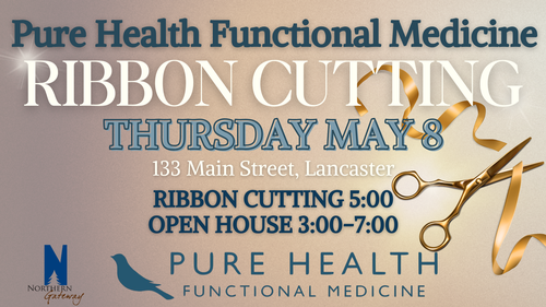 Event Description:Join the Northern Gateway Regional Chamber of Commerce in welcoming Pure Health Functional Medicine to downtown Lancaster! Celebrate their grand opening with a special ribbon cutting at 5 PM, and enjoy an open house from 3 to 7 PM.